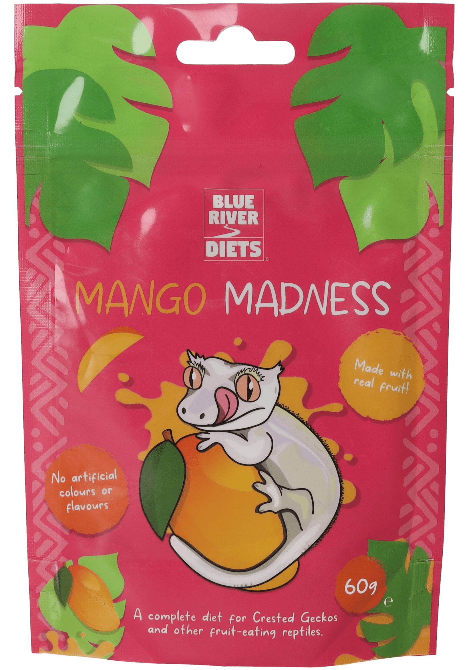 Mango Madness is a complete and balanced diet for Crested Geckos and other fruit eating reptiles. Made with natural ingredients, it provides essential protein, fibre, vitamins, minerals, and antioxidants. Fortified with probiotics to aid gut health, Blue River Diets ® provides the ultimate gecko food for your reptiles’ well-being.