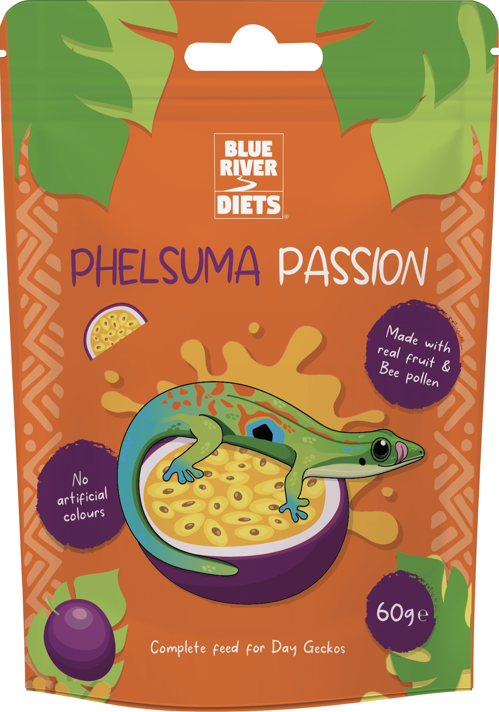 Phelsuma Passion is the newest addition to the Blue River Diets® range — a complete, nutritionally balanced diet formulated specifically for Day Geckos (Phelsuma species). Developed using the most up-to-date understanding of wild feeding ecology, this blend mirrors the natural fruit–nectar–pollen diet consumed by Phelsuma in the wild.